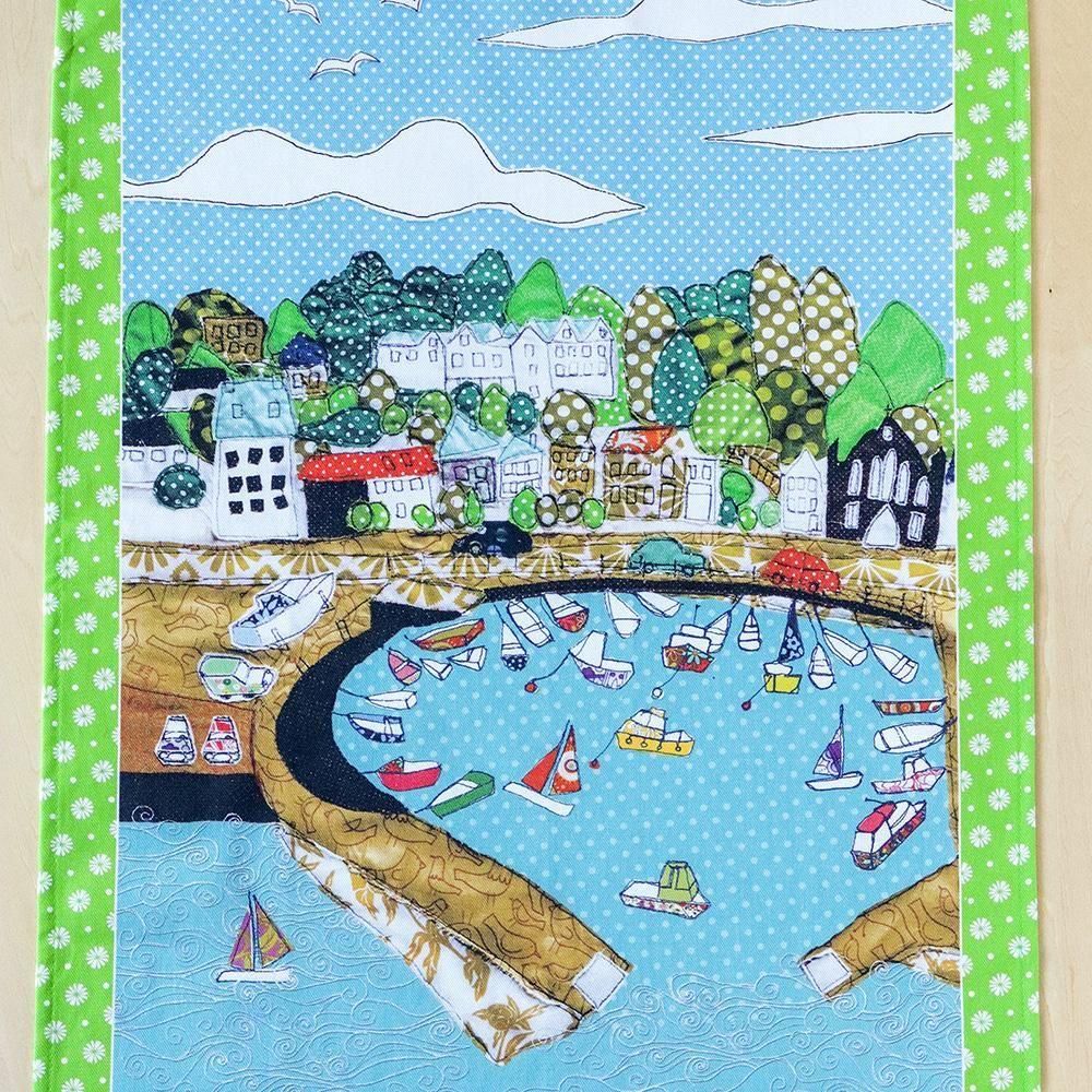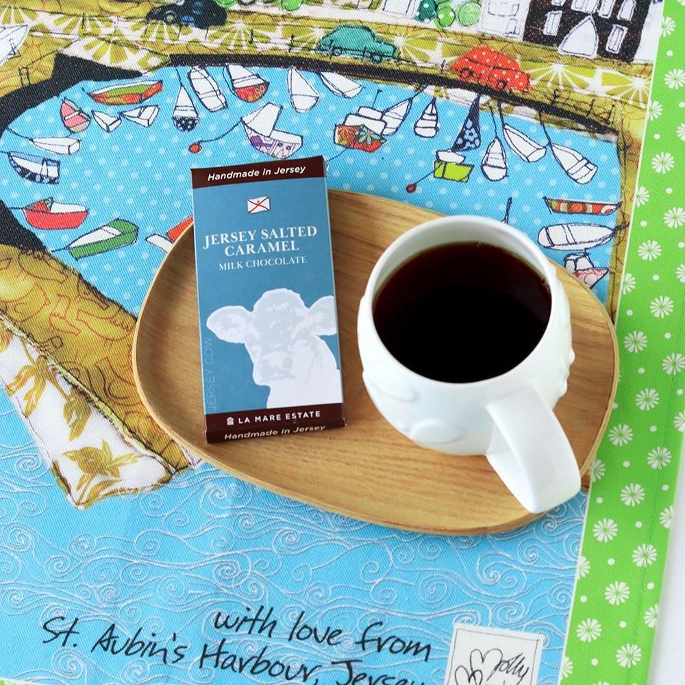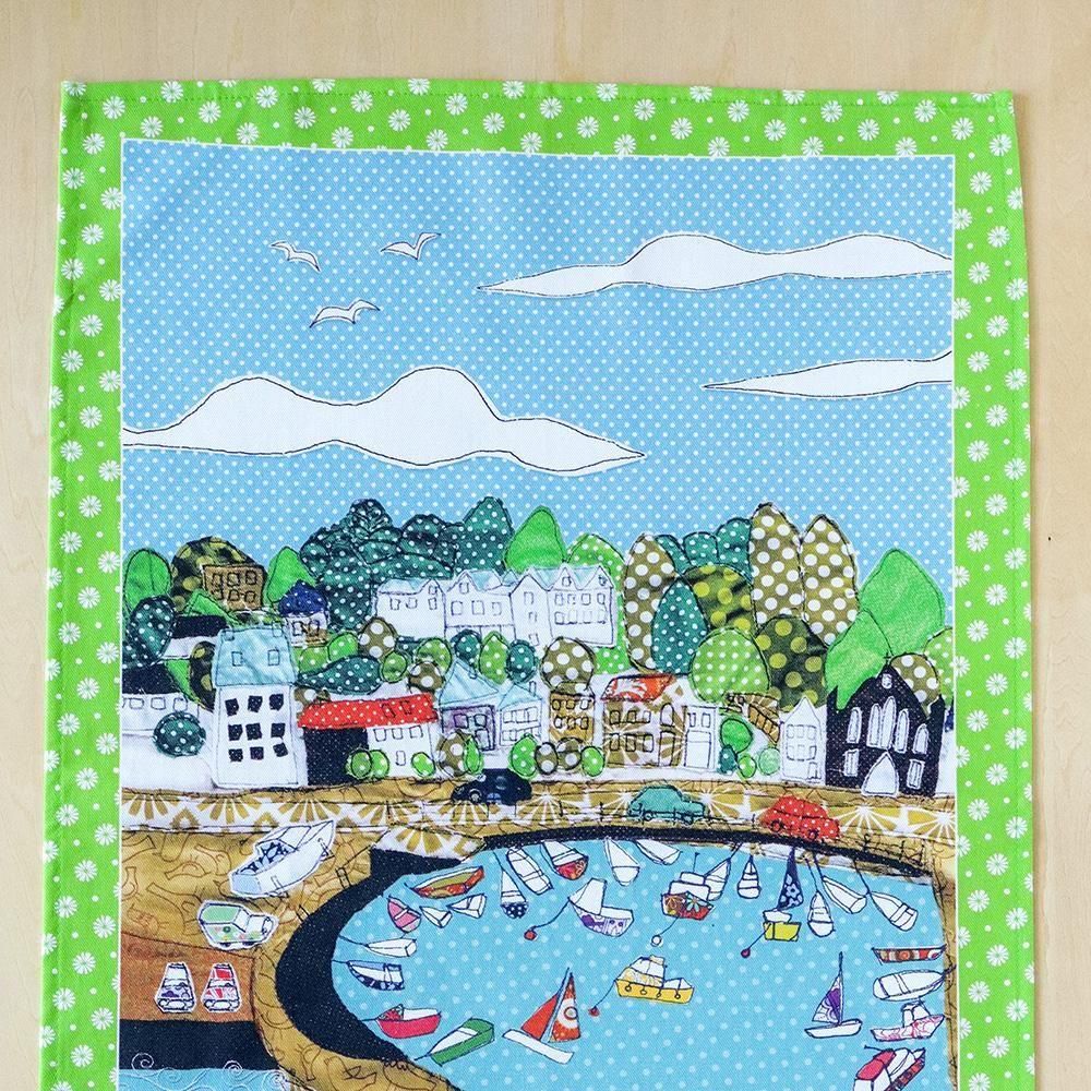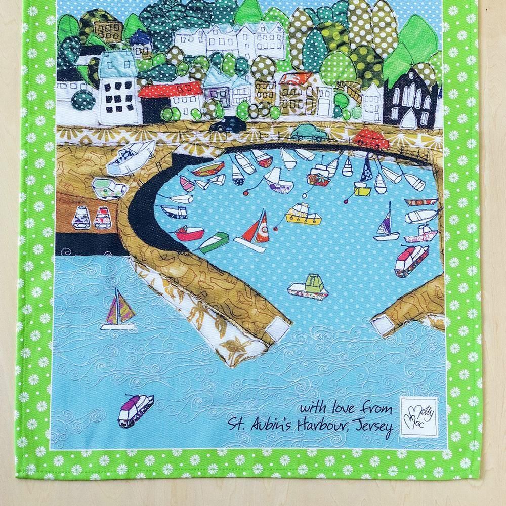 ジャージー島の美しい港町、St. Aubin's Harbour(セント・オーブンズ・ハーバー)を丁寧に描いたティータオルです。